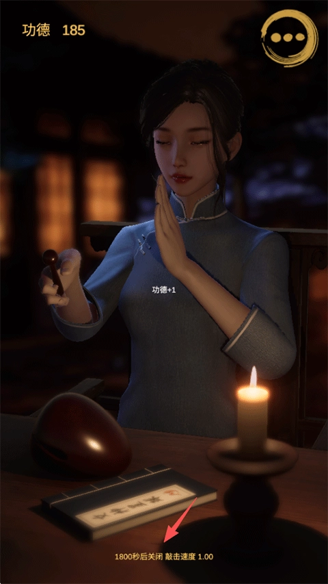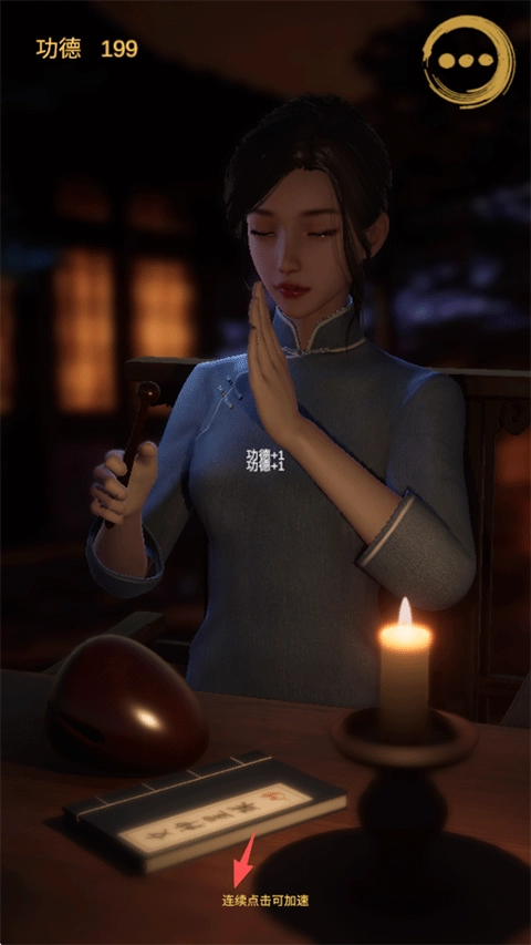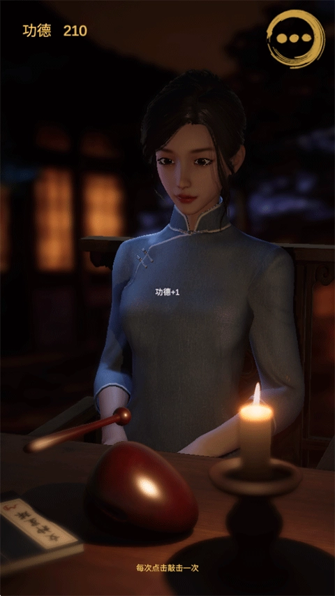 美少女敲木鱼,既养眼又能缓解压力!在当前模式下,玩家只需静静聆听空灵的木鱼声就可以了,整个过程不需要你手动点击,会由系统里的女施主自动进行敲击。