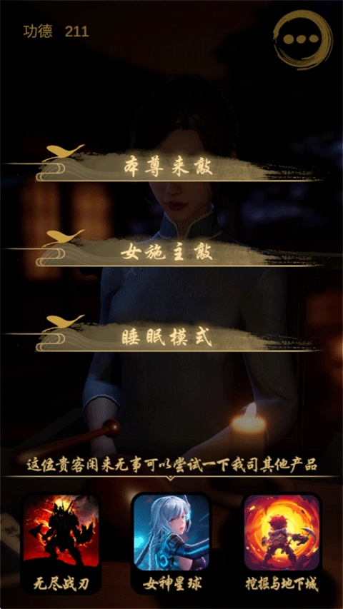 另外,游戏里还配备了“睡眠模式”,开启之后,屏幕会调到最暗,只留下木鱼的声效,给您打造出一个能让人极度放松、帮助入眠、安定心神的沉浸式氛围。