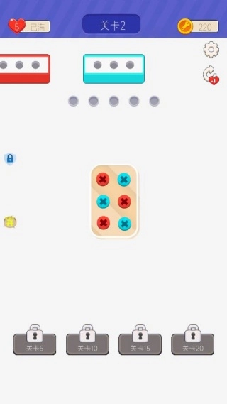 随后开启第二关,难度略有提升,不过操作方法不变,还是要把螺丝放进对应的盒子里。