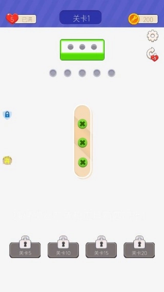 进入游戏后,第一关难度很低,只要轻轻点击螺丝就可以消除。