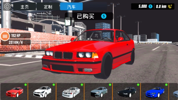 玩家进入游戏后,点击画面左上角的“汽车”按钮,就能在弹出的界面里购买并解锁各种型号的汽车,具体操作可参考下图。