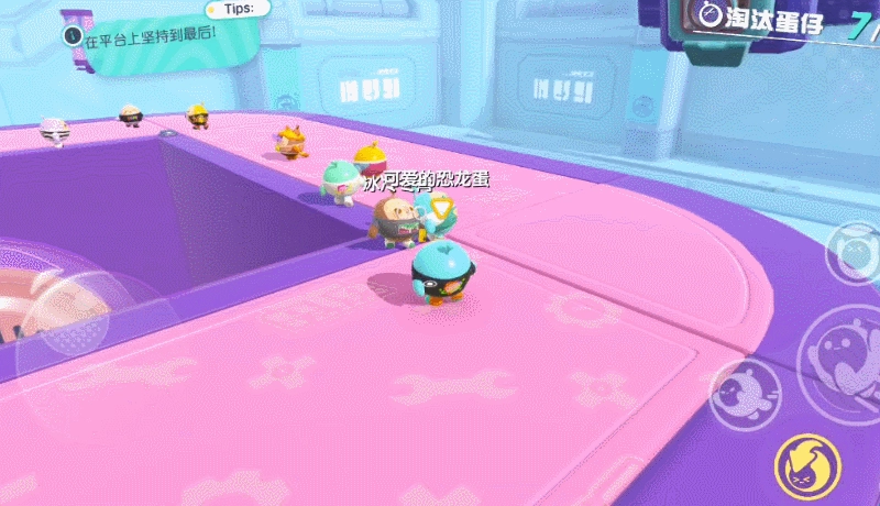 除了基础的跑、跳、飞扑动作外,我们还能启用一个类似技能的“滚蛋”机制。开启后蛋仔会化作圆球向前滚动,速度较快且可以跳跃,但碰撞时会产生明显反弹,因此建议在障碍物较少的场景使用,例如竞速赛里的直道阶段,或是需要快速通过机关地板的情况。