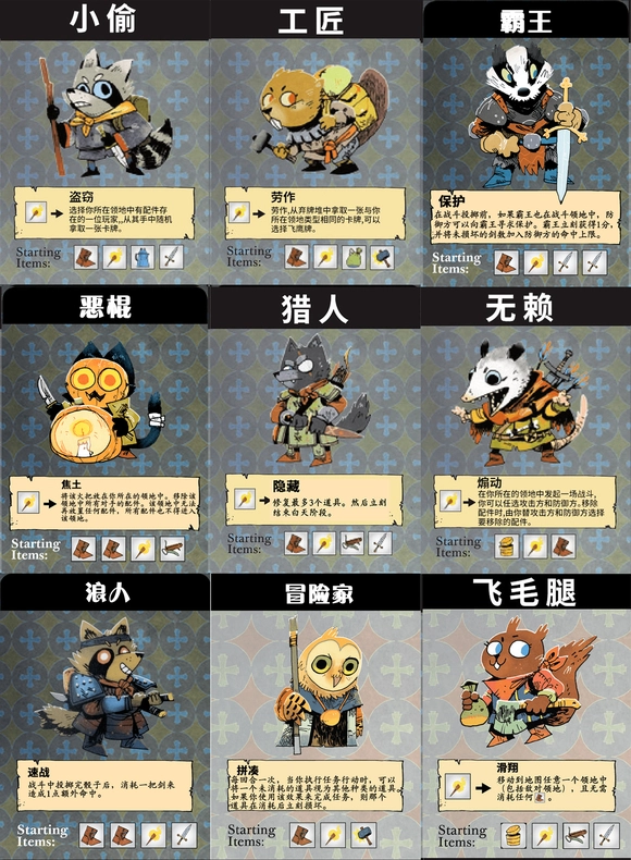 首先看火把机制,前面那些角色释放技能都得消耗火把,恶棍游侠甚至要永久移除火把才能用技能,而你的火把完全不用消耗;再看剑,你有两把剑,不是你畏惧威胁,反而是别人得忌惮你带来的威胁——基础版里,你要是不爽了直接就能拆猫的老巢,猫还拿你没辙。运气好的话第一个回合就能凑出三把剑,一路砍杀过去就行,杀怪的时候还能不断得分,这设定实在太夸张了。