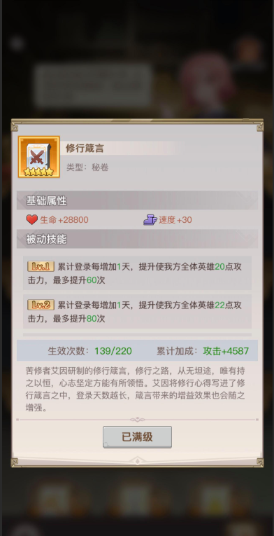 既然提到速度是最关键的属性,这里就告诉大家最有效的加速方法。排在首位的是阵容意志,能让该阵容的所有角色加速100点。其次是众生和修行这两个全体加速30点的秘卷,加起来又能增加60点。第三则是大鲸鱼圣岛,满级状态下可以提供70点加速。现在知道资源该怎么分配了吧。