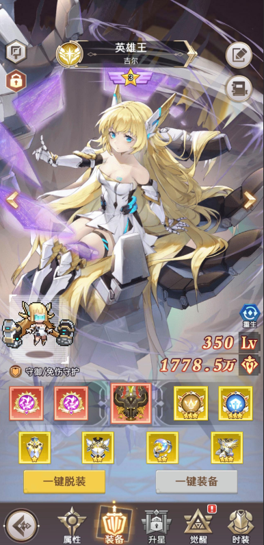 英雄王在游戏的前中期阶段,如果装备和觉醒等级还没提升起来,是无法承担扛伤任务的。建议把她当作硬控角色来使用,这样能有效限制敌方攻击最高的角色,使其一回合无法行动,像古娜这类角色就很适合用她来针对。