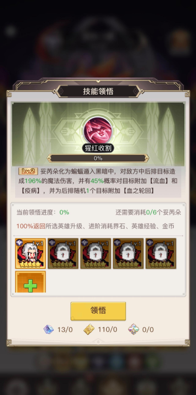 学习一个技能需要6个相同的英雄,光暗英雄也包含在内。这就结束了吗?还得准备上百张抽卡券、40个种族魔晶,以及一些神觉技能石才行。