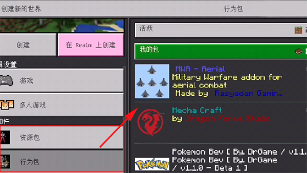 6、接下来回到游戏创建世界的界面,在“资源包”选项里就能选择刚才导入的mod模组了