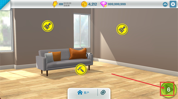 1、点击右下角标有【6】的按钮,进入对应关卡,开启装修消除任务,着手收集指定方块。