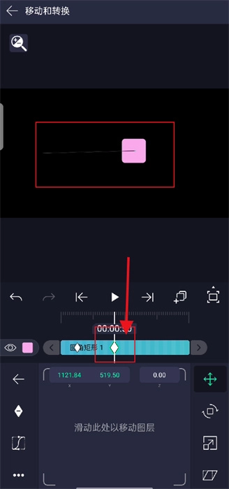 4、随后,把圆角矩形也移动至所需位置,接着设置结束关键帧;