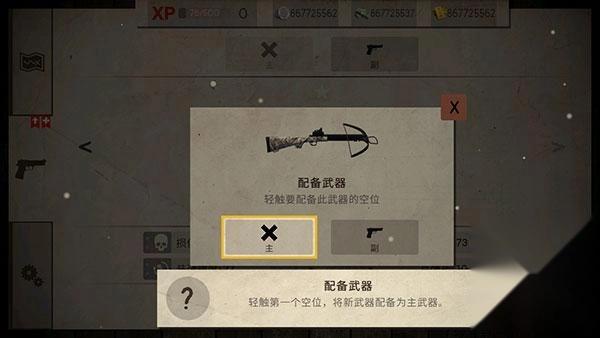 4、轻触第一个空位,将新武器配备为主武器。