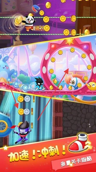 3、多元场景体验:包含魔法世界、童趣糖果屋等风格多样的游戏场景,每个场景的视觉主题与障碍设置各不相同,为玩家带来全新的跑酷体验。