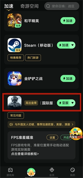 1、在本站完成游戏安装后,启动加速工具,找到对应的游戏并点击加速按钮。