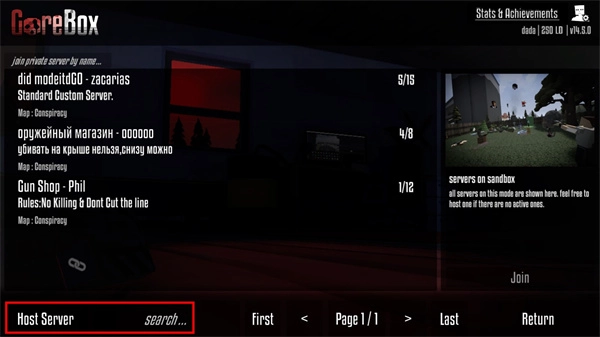 3、要是好友已经创建好了房间,你可以点击“search”进行搜索并进入;要是好友还没创建房间,那就需要点击“Host Server”创建主机来搭建房间。