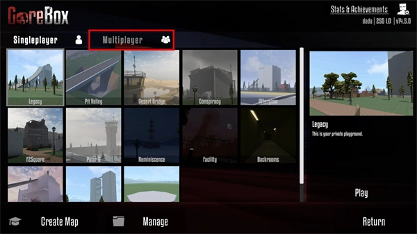 2、进入地图界面后,点击上方的“Multiplayer(多人游戏)”选项;