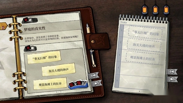 在故事的推进过程里,借助对话交流、电视节目内容、论坛上的信息等多种渠道,都能够收集到相关情报和可疑之处,而这些形形色色的情报,将成为事件的重要线索。