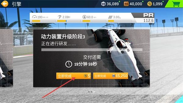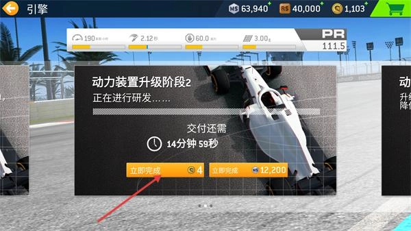 4、完成阶段2后,接着选择【动力装置升级阶段3】,再次使用【立即完成】功能来快速推进该阶段的升级进程。