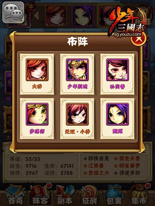 首先是阵容选择这一步,我在《少年三国志》里选了当前比较主流的群雄路线