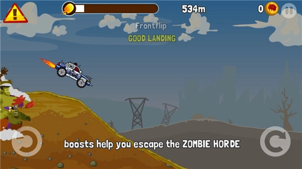 4、武器与驾驶的协同:在游戏里,你得同时把控车辆的平衡、下落的角度,还有武器发射的节奏,通过击碎前方的僵尸来开辟通路,防止因为碰撞减速而致使闯关失败。