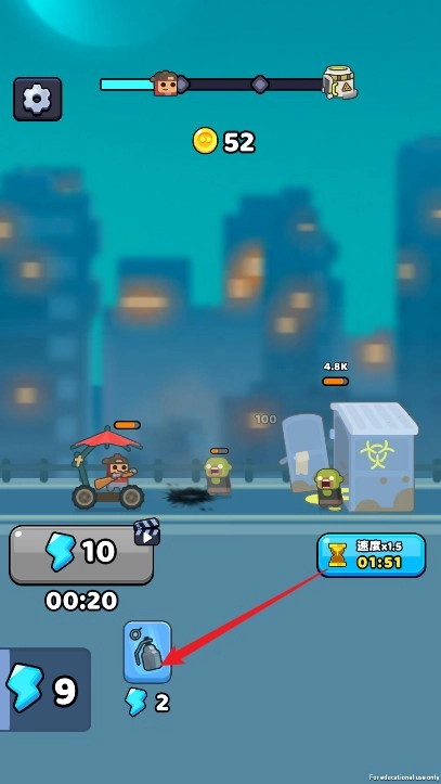 4、当玩家使用能量时,能够投掷手榴弹,以此快速清除周围的僵尸,进而增加自身的生存几率。