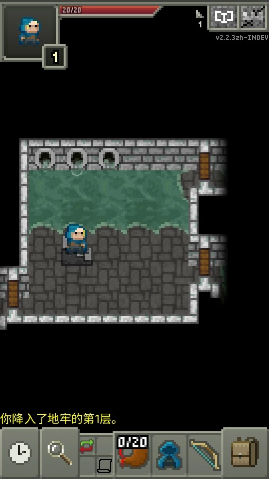 这段音乐采用8-Bit电子乐风格,却能恰到好处地渲染出独自探索的冒险者氛围。界面设计十分简洁:左上角显示HP槽,右上角标注玩家当前所在层数与持有的钥匙数量,下方则通过文字叙述呈现玩家遭遇的事件及对应的选择项。