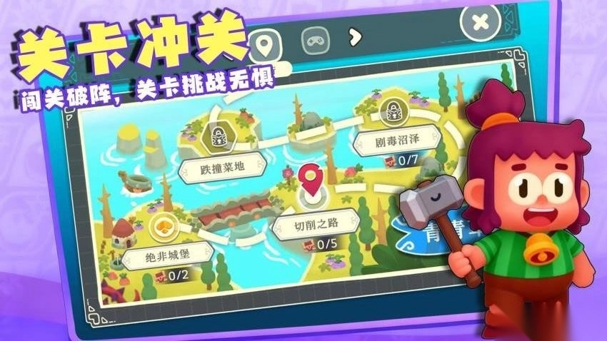 1、冲鸭小小人设有丰富的副本,玩家能够前往剧毒沼泽、跌撞菜地等区域进行探索