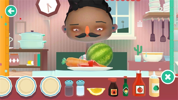 托卡厨房2的画面简洁明了,玩法也十分轻松惬意。玩家只需运用菜刀、铁锅这类基础厨具,就能轻松处理各类食材,再搭配上适宜的调料,美味的菜肴便自然成型。做好后还能让客人品尝,每位客人会依据食材的搭配和味道,流露出各异的表情反馈。