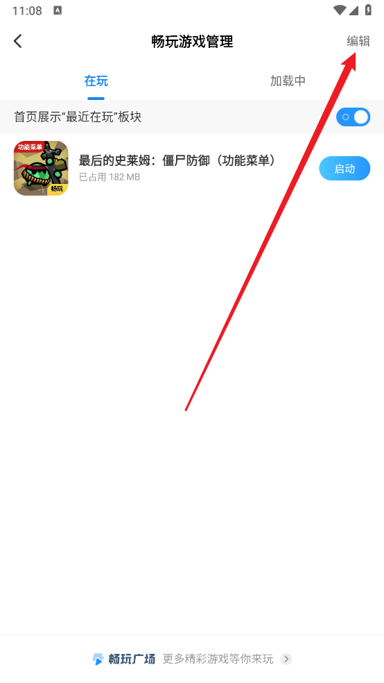 3、接着在畅玩游戏管理页面点击右上角的"编辑"。
