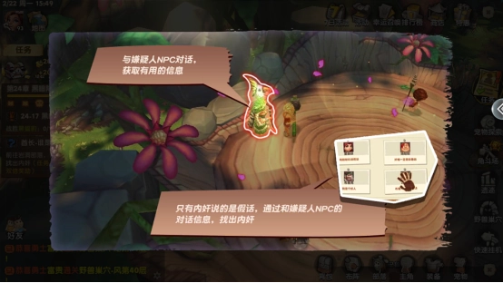 要找出谁是内奸,得和4个NPC对话才行。这4个NPC里有一个人在说谎,只要能准确判断出说谎的是谁,就能领取丰厚的道具奖励。就算答错了也没关系,还是会有部分奖励发放的~