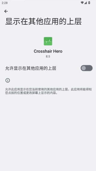 2、授权操作十分简便,你只需允许它在其他应用的上层显示就行。