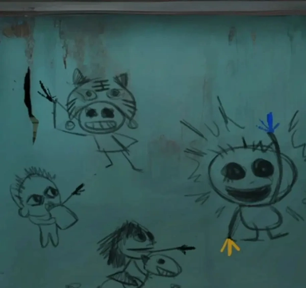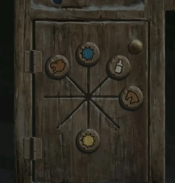 查看左侧柜子上的图案,对照黑板上的内容,按照对应顺序调整后,打开下层柜子就能拿到【剪纸小人】和一面【锦旗】。剪纸小人的姿势看着很眼熟,像极了安全通道标志上那个奔跑的小人。离开房间来到走廊,会触发老奶奶相关的剧情,疑似那位盲奶奶要出场了!