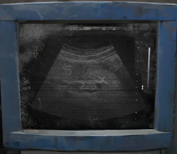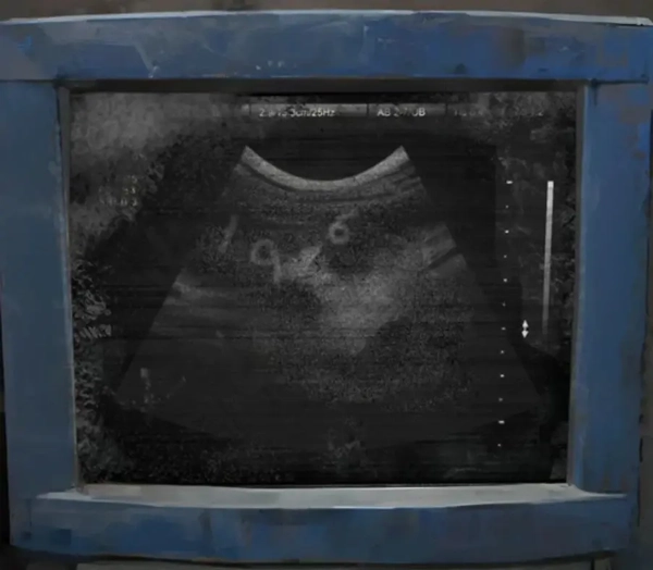 探测器给出的线索是大脑和肝脏的图像,从中分别探测到数字【196】和【524】,将这两个数字组合起来就得到六位密码【196524】。接下来需要上到二楼,输入这个密码打开门,继续后续的行动。