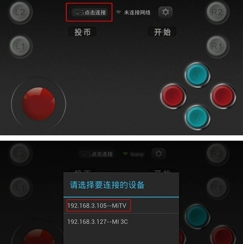 2、扫描到电视设备后,选择该设备,虚拟手柄就会和电视自动连接,电视也会自动识别出这部手机。