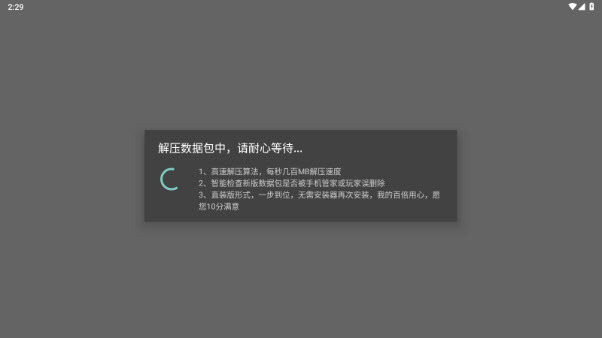 1、本版本为模拟器版本,安装游戏后首次打开时,需要解压数据包,请您耐心等待。