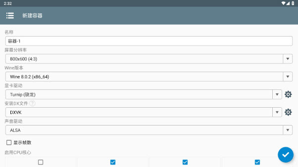 4、完成参数设置后,点击右下角的“√”按钮即可创建容器。