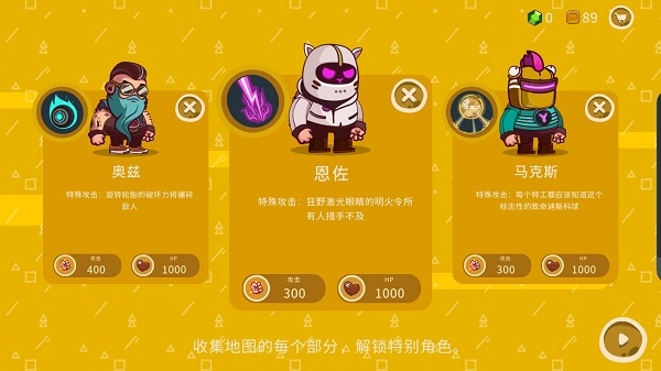 收集地图的每个部分,可以解锁特别角色。