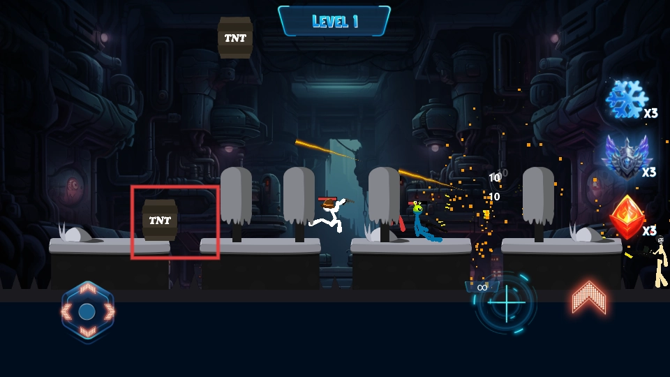 3、请注意避开【TNT】以防受到伤害,要迅速歼灭敌人,以此推动关卡的进度。
