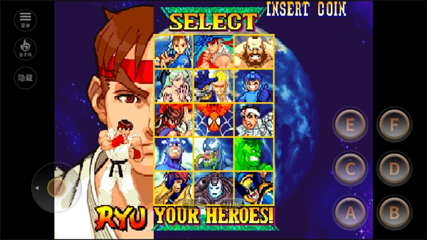 3、玩家在此可以挑选一众经典的漫威英雄与街霸角色开启游戏,借助搓招的方式施展出流畅连贯的连招,能为玩家带来拳拳到肉的游戏打击体验。