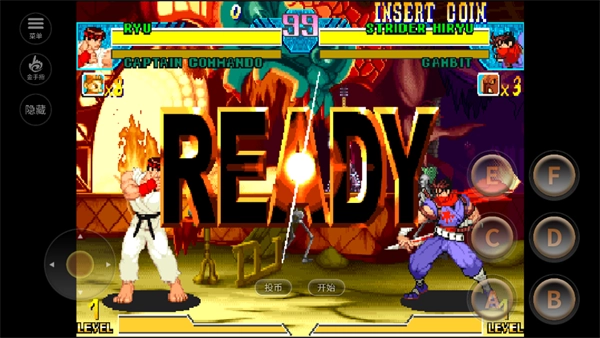 1、启动游戏后,先点击投币按钮,接着点击开始按钮,就能顺利进入游戏界面了。