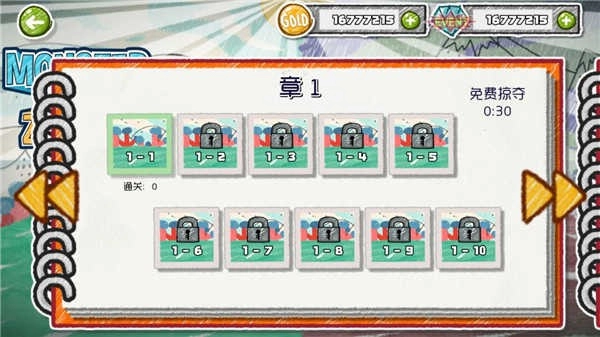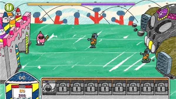 彩色素描风格的画面充满艺术气息,每一关都极其考验玩家的策略思维。玩家需要利用不同的怪物组建阵容,并搭配它们的各异形态来与僵尸对抗。不同种类的怪物有着独特的攻击方式,每次成功消灭敌人后,还能解锁新的怪物,从而进一步增强自身阵容的实力。