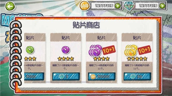 拥有增加怪兽、超级怪兽能力值的多样贴片。