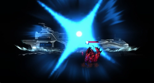由“思维工厂”制造的重型武装舰。此舰搭载了“遗物”级武器——阳电子炮,尽管为了舰载需求进行了轻量化设计,但依然能在远距离造成极高伤害。作为大型船团“故乡”的主力武装舰,它广泛活跃在远征前线。