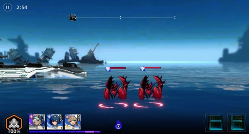 3、再次点击,炫酷技能即刻释放,持续攻击大量怪兽,同时守卫战舰安全,巧妙躲避怪兽的攻击。