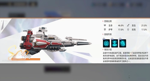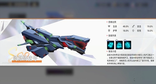 此舰是基于旧世界设计图改良后建造的少数无人机护卫舰之一,主要应用于海面哨戒护卫。舰船内部设有专门建造无人机的微型工厂,消耗的无人机可由内部工厂自行补充,因此能够长时间在海上单独行动。