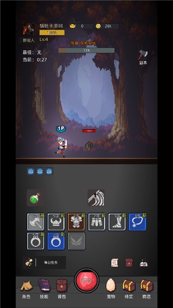 3、通过战斗来获得资源,升级和强化自己的装备。