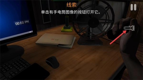 3、按照线索提示,单击带有【手电筒图像】的按钮,完成手电筒的开启操作,解锁该道具功能。