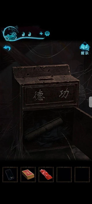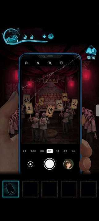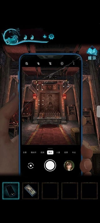 6、男的拿着皮影点走廊,这里记得跟着皮影走,过完剧情,把手机立石碑上,把烟袋烧给妹子;