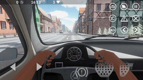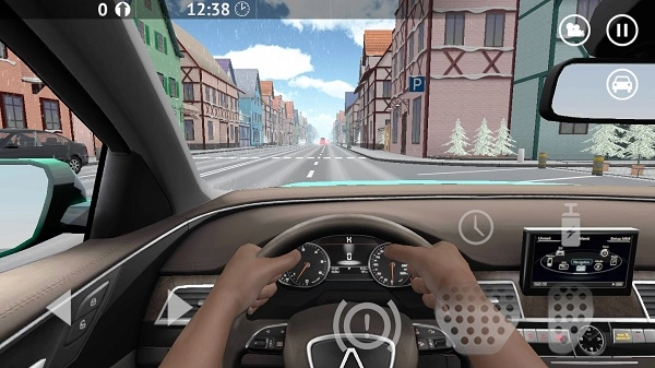 3、在界面的左侧则是方向按键,期间你也可以通过设置,将驾驶操作设置为重力感应或者方向盘的原始操作。同样可以调节还有灵敏度,转向助力以及变速档杆。