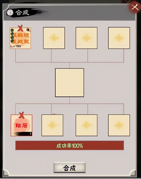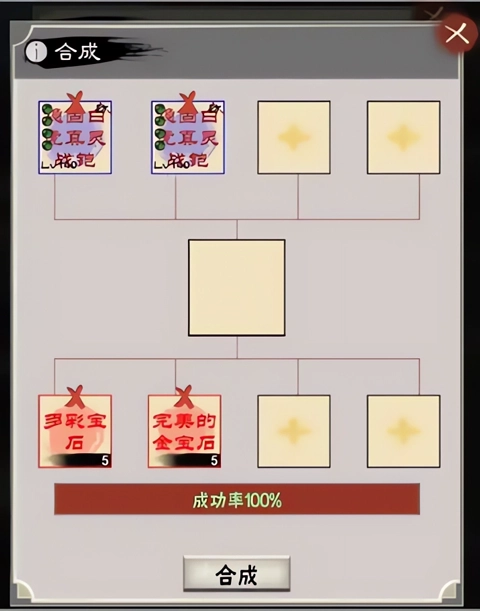 上面第一个位置放置【主装备】,其后三个位置放入带有期望副属性的【同品质装备】;下方依次摆放【多彩宝石】与三颗【同品质宝石】。完成合成后,【主装备】的副属性会从上方那三件装备的副属性中随机生成一个。