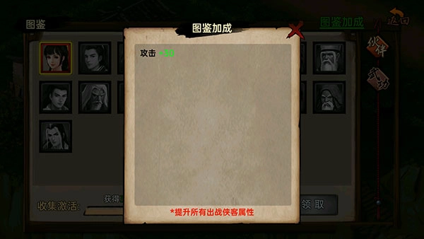 当你逐步开启更多武侠相关的图鉴以及武功对应的图鉴时,随之而来的属性提升效果也会更加显著。