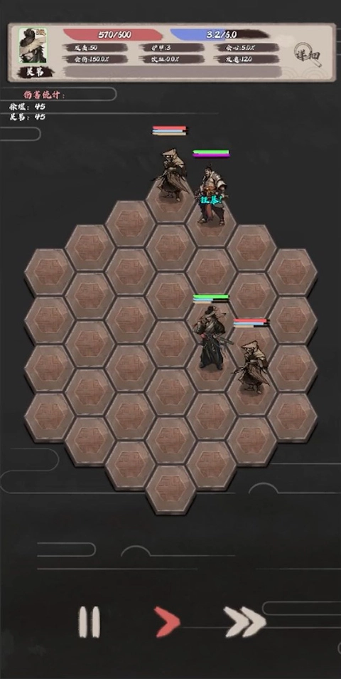 每个单位都具备气血、冷却、攻击条这三项战斗属性,战斗开启后,攻击条与冷却会同步开始计时。当攻击条积累满时,单位便会发起攻击;而冷却条攒满时,单位则会释放技能。部分技能属于状态类技能,这类技能在每场战斗中仅释放一次,之后单位就会进入特定状态,不再重复释放该技能。当所有敌人都被消灭时,即可获得战斗胜利;若我方角色全部阵亡,则本局游戏失败——这意味着只要我方还有一名角色存活,就能继续进行爬塔挑战。